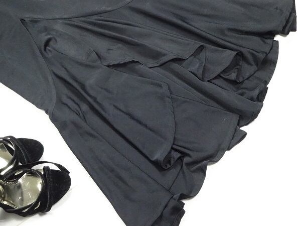 裾のフリルがエレガントなロングスカ-トです。ファーマルな席をはじめ社交ダンスやコ-ラスやコンサ-トにどうぞ。裏地有り。後ファスナ-有り。