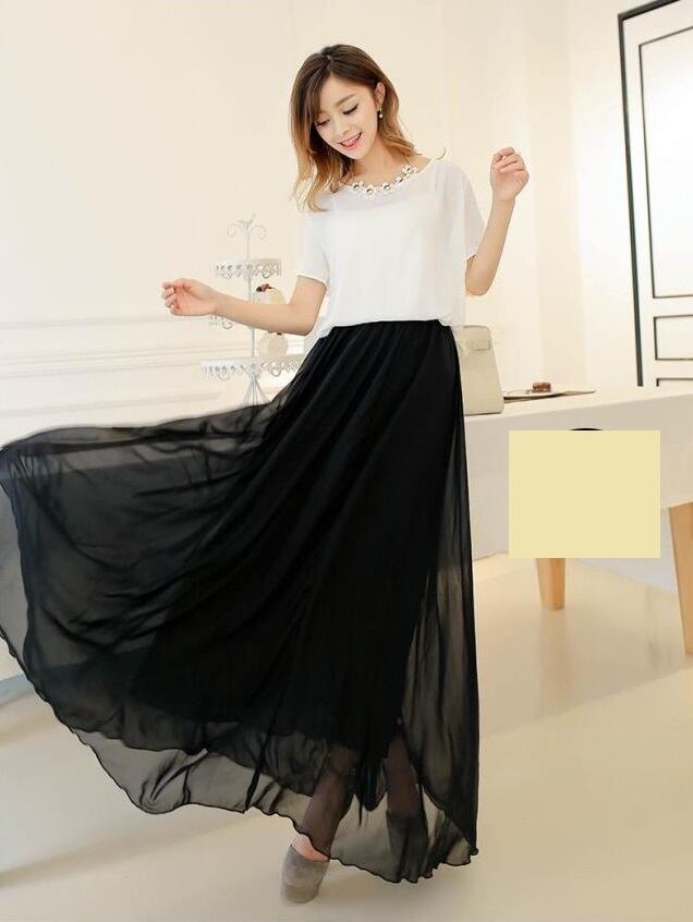 シンプルなシフォンのロングスカ-トです。歩く度にふんわりと揺れる裾が視線を集めます。!リゾ-トコ-デに最適!裏地付。他の色も出品しています。