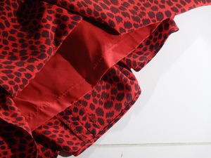 ウエスト肩絞りレオパード柄が魅力的なワンピース。胸元からウエストにかけてカシュクール仕立て。ウエストはスナップとウエスト紐リボンで結んで巻きスカート風に。鮮やかな赤に黒のレオパード柄が華やかな一着です。ペチコート付。