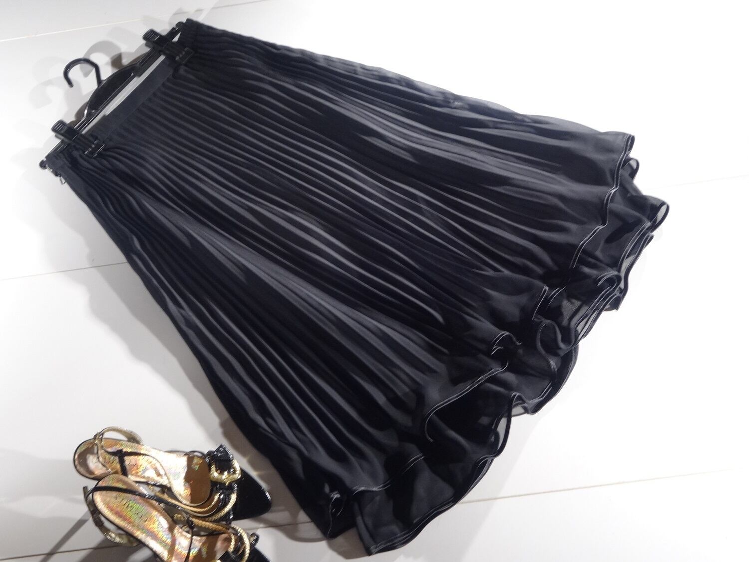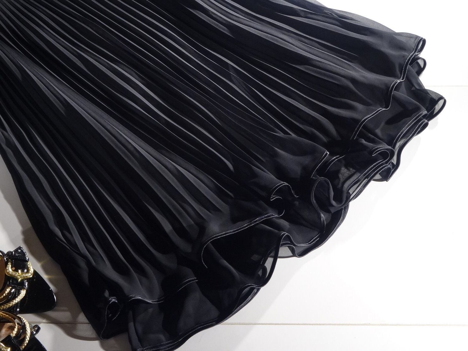 細かなプリ-ツがとても綺麗です。裏地付ロング丈です。ウエストは、両サイドがゴム仕様でゆったり着用できます。