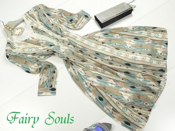 ■サイズ フリ- バスト:約98cm ウェスト:約62cm~90cm 着丈:約105cm 肩幅:約55cm 袖丈:約42cm