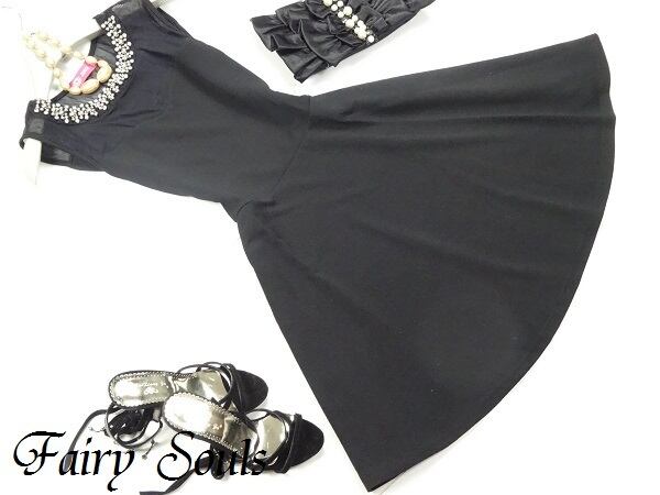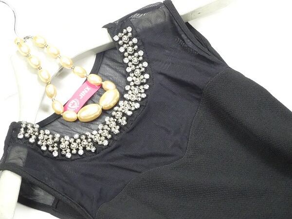 首元のビジュ-がとても華やかで、胸上はシ-スル-でAラインのシルエットで女性らしい大人の雰囲気を醸し出してくれます。パーティやイベントなど、どんなシーンにも活躍してくれます。裏地なし。ファスナ-有。