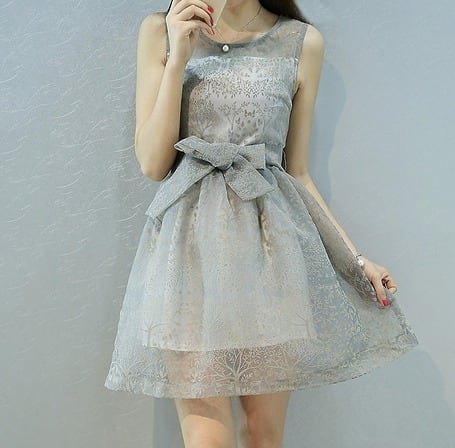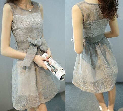 全体的に白地の上から白の可愛らしい花模様が刺繍されているオーガンジ-素材が被さりとても素敵な膝丈ワンピ-スです。胸元の透け感がキュートでちょっとセクシーな魅力的なデザインです。右サイドファスナー有。裏地あり。