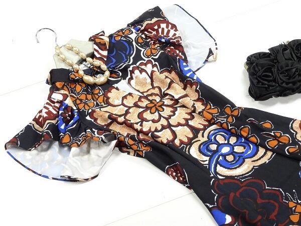 ■サイズ 9号 バスト:約96cm ウエスト:約98cm~ ヒップ:約120cm~ 袖丈:約13cm 着丈:約97cm 肩幅:約33cm