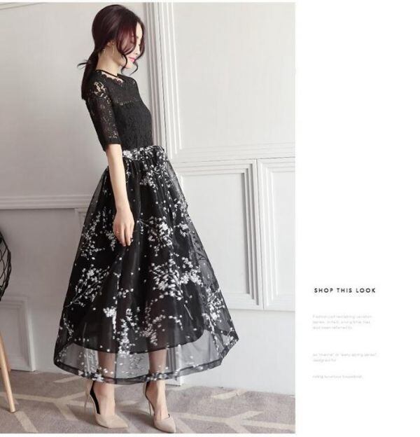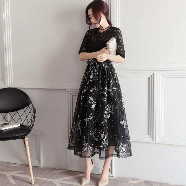 花柄チュ-ルレース仕立てパ-ティ-ワンピ-スです。トレンド感たっぷり色の美しいエレガントなワンピ-スです。ハイウエストのリボン切替で脚長効果のあるデザイン性のあるスタイルがとても魅力的な一着です。全体的に女性度UPに仕上げられています。背中ファスナ-有。裏地有。胸パット付き。