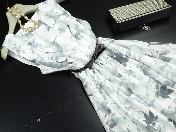 全体的に上品な柄で飾られ、優雅な女性らしさが香る華やぎの一着です。丈も長めで大人っぽいワンピ-スです。シンプルな飽きのこない着まわせる一着です。裏地あり。背中ファスナ-有。ベルト付き。