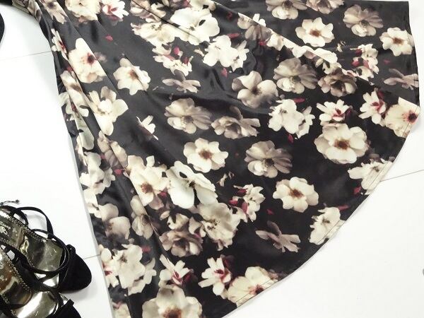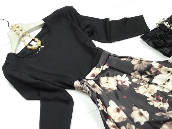 花柄がとても綺麗な艶ぼかしワンピ-スです。大人っぽい色合いで結婚式やパ-ティ-にもお薦めの一着です。右サイドファスナー有。裏地なし。