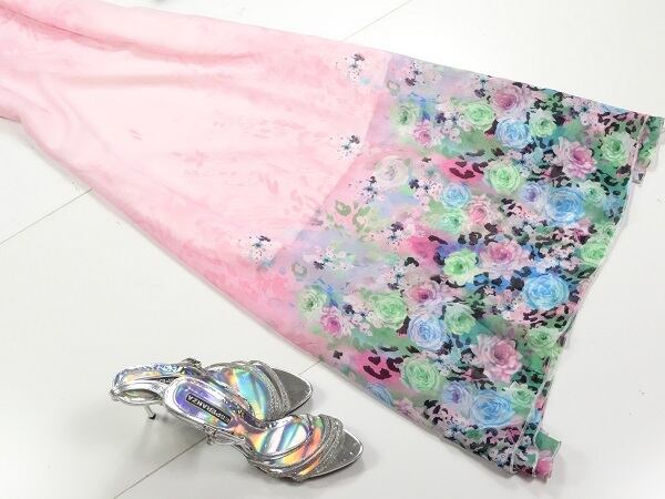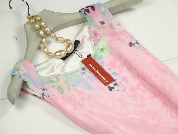 花柄プリントシフォンワンピ-スです。夏らしい明るい色の組み合わせで着心地抜群な素材でパ-ティ-はもちろんちょっとしたお出かけにもお役に立てる一着です。かぶるタイプです。裏地付。