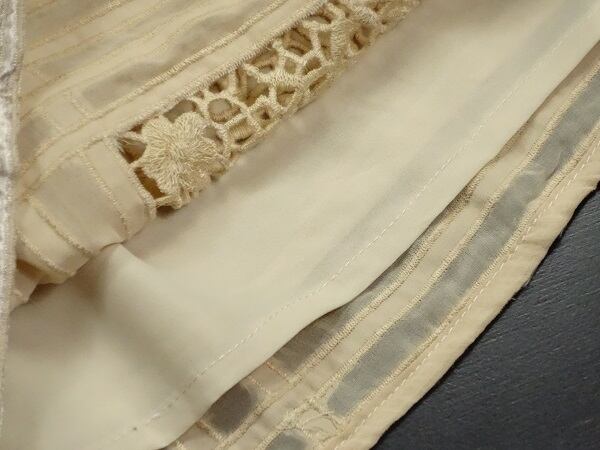 トップスのレ-スと裾の刺繍がフェミニンなデザインで、気品振り撒く女性を演出し、豪華でリッチな気分にさせてくれます。清楚な女らしさが香るオススメの一品です。様々なシーンで活躍してくれるでしょう。裏地付き。ファスナ-なし(かぶるタイプ)
