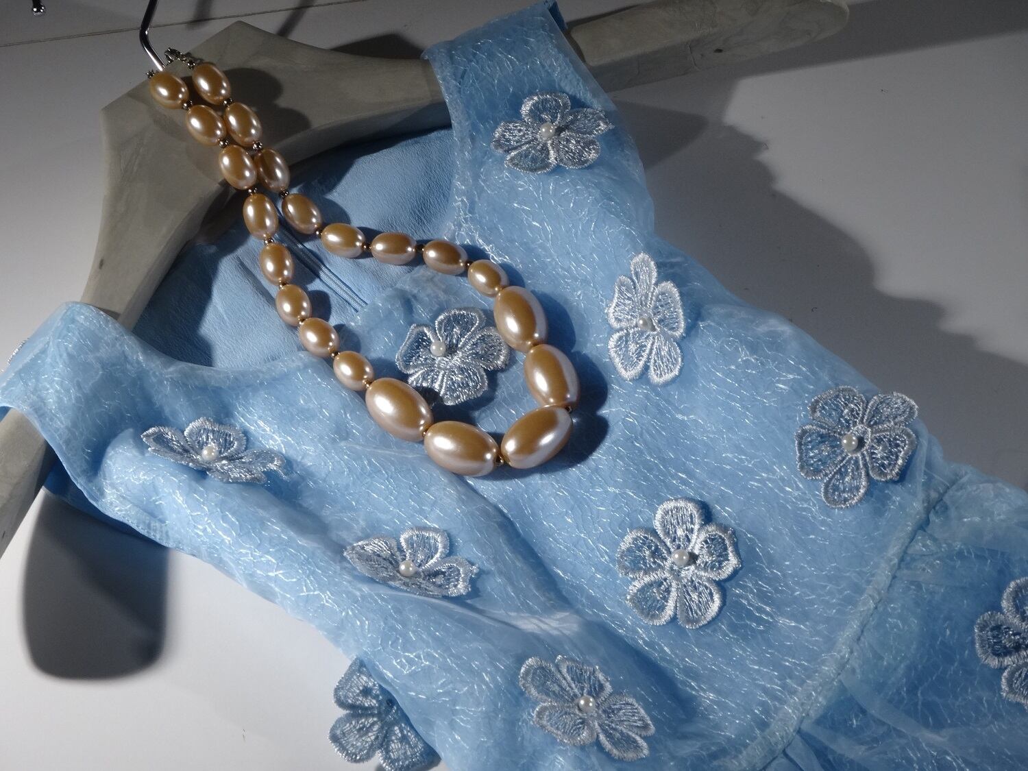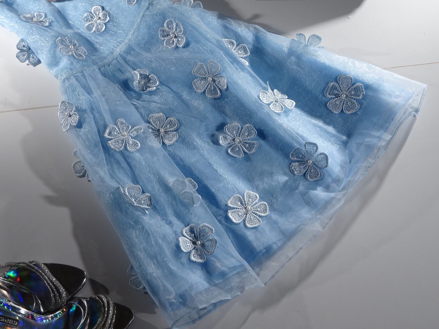 胸元から裾までの立体花刺繍がゴ-ジャスなワンピ-スです。フェミニンかつ可愛い一着です。結婚式や謝恩会などの行事にいかがでしょうか。裏地あり。背中ファスナ-有。