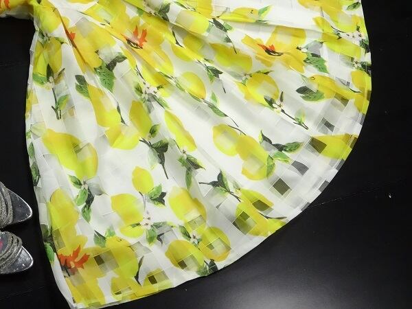 花柄とチェック柄の愛称がとても素敵です。素材も良く着心地抜群です。裏地あり。背中ファスナー有。