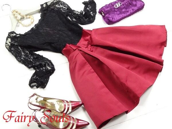 繊細なレ-スは薄手でとてもしなやか、光沢感もあり着心地抜群です。黒と深みのある艶やかなワイン色がマッチして、エレガントで品の良いデザイン。普段使いはもちろん、お呼ばれやデート、コンサートにと、幅広いシーンで活躍してくれます。右サイド背中ファスナー。裏地あり。