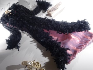 ドレスと羽根付ガウンのとても豪華なセットです。演奏会や発表会にいかがでしょうか。右サイドファスナ-あり。裏地付。