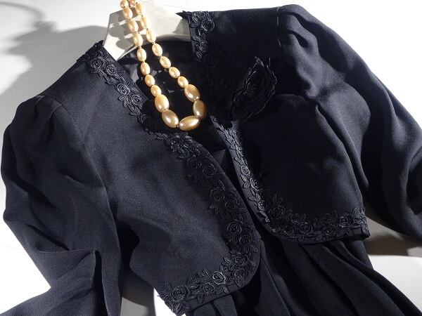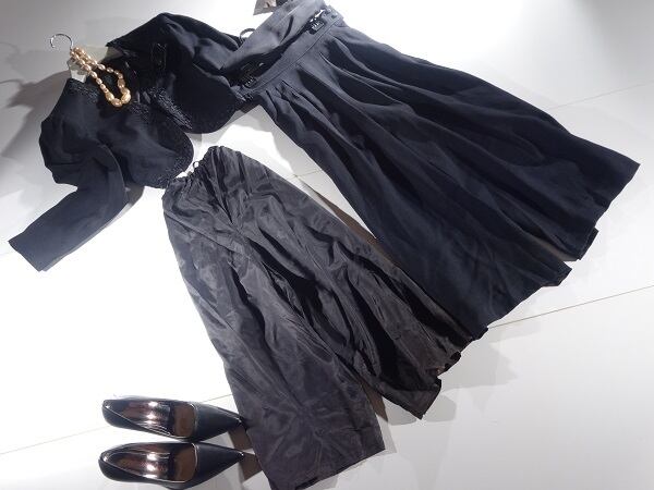 エレガントなジャケットとキュロットスカートのフォーマルなセットアップ。ジャケット襟元の刺繍が上品。キュロットスカートはペチコート付。ゆったりしているので長時間着用していても楽です。日本製。裏地あり。
