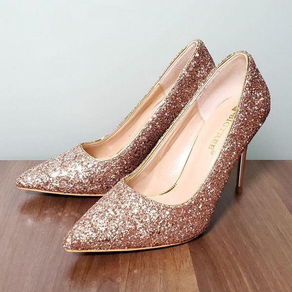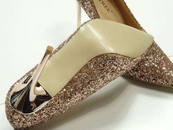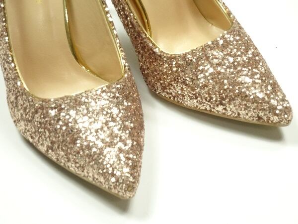 ○新品 ○表記サイズ:36(23.0cm) ○実測:ヒール高さ10cm.甲幅外寸8.3cm ○カラー:ラメ入りシャンパンゴールド