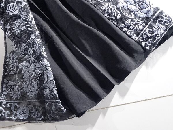 オーガンジーの透明感がとても美しいコートでボタニカルの細かな刺繍が素敵です。素材の一部にシルクを使用しています。コート両サイドスリットあり。キャミソール付。
