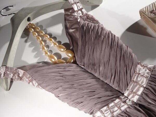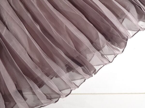 ビジュー飾りシルクプリーツのワンピース。V字デザインの胸元には中央に大きなフェイクストーンのビジュー飾りと、ウエストにはスパコールをあしらった華やかな一着。トップスはV字にそって縦に細かなタックをとり、ウエストから裾へかけてたっぷりとったシルクシフォンのプリーツがエレガントで優しい印象を与えてくれます。デート、お呼ばれ、パーティ、コンサート、結婚式にと、さまざまなシーンに活躍してくれます。背中ファスナー。裏地あり。