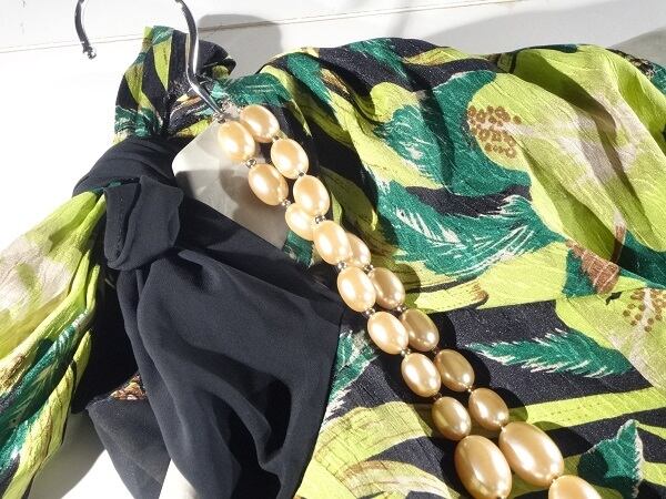 2種類の生地使用スカ-ト部分サ-キュラ-使用で全円フレア-になっています。ダンス衣装に最適なドレスワンピ-スです。裏地付。後ファスナ-有。