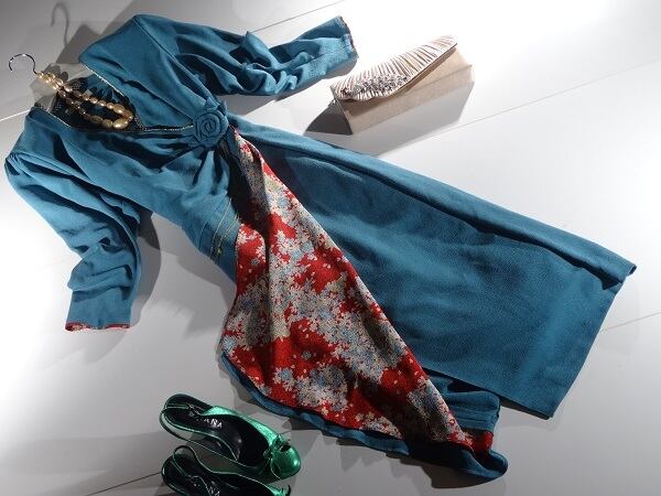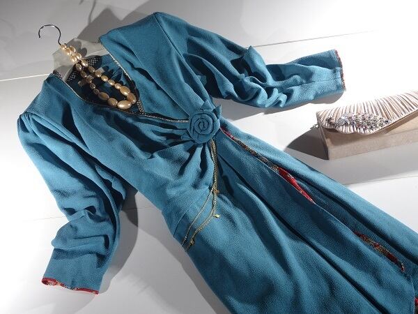 和柄の着物風のワンピ-スです。ウエスト部分のバラコサ-ジュと襟のゴ-ルドがポイント。インナ-付。