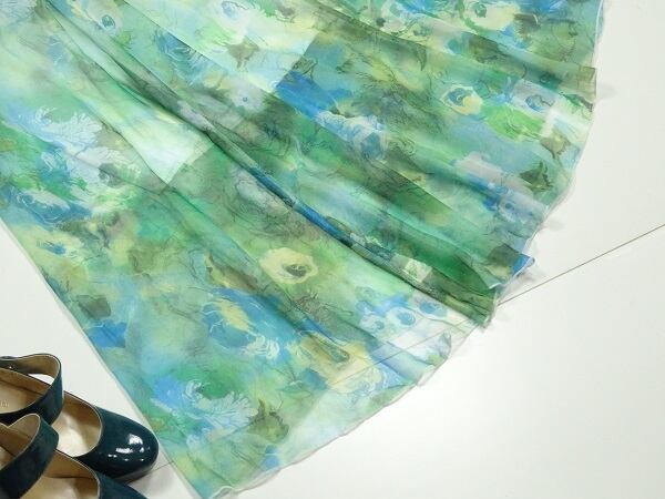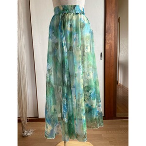 花柄プリントシフォンフレア-スカ-トです。とても美しい花柄プリント模様のシフォンが歩くたびにふんわりと揺れる魅力的なシルエット。リゾートコーデにも最適です!ウエストゴム仕様で伸縮性あり。裏地付。