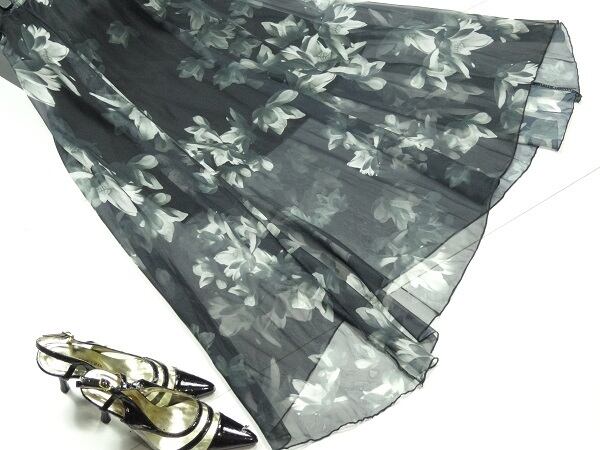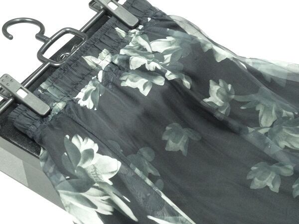 花柄プリントシフォンフレア-スカ-トです。とても美しい花柄プリント模様のシフォンが歩くたびにふんわりと揺れる魅力的なシルエット。リゾートコーデにも最適です!ウエストゴム仕様で伸縮性あり。裏地付。