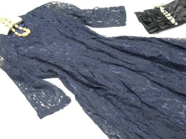 花柄が施されたレースの上品かつ優美なマキシ丈フレア-ワンピ-スです。全体の総レ-スがとても豪華なデザインで大人の女性を醸し出してくれる一着です。裏地あり。背中ファスナ-有。