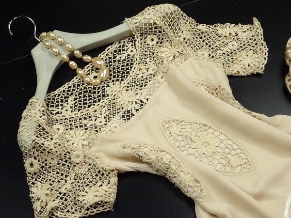 トップスのレースと裾の刺繍がフェミニンなデザインで、気品振り撒く女性を演出し、豪華でリッチな気分にさせてくれます。清楚な女らしさが香るオススメの一品です。様々なシーンで活躍してくれるでしょう。裏地付き。ファスナーなし(かぶるタイプ)
