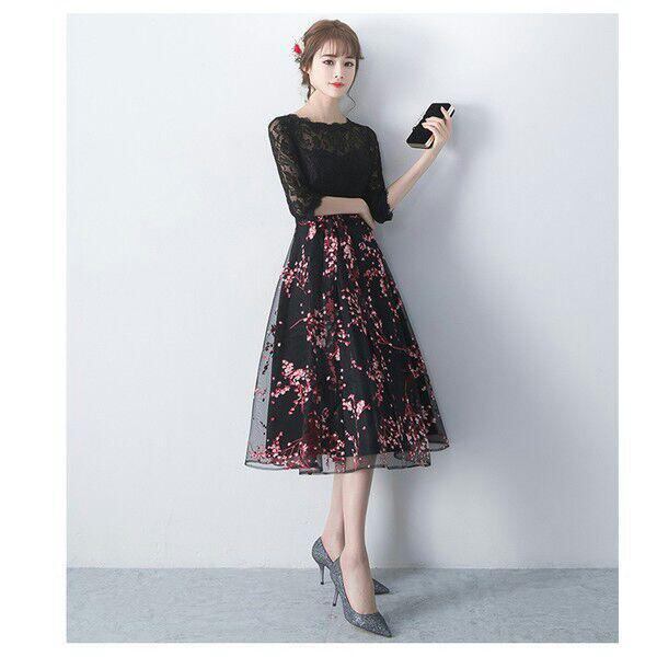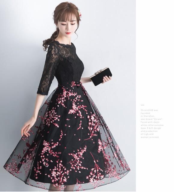 花柄チュ-ルレース仕立てパ-ティ-ワンピ-スです。トレンド感たっぷり色の美しいエレガントなワンピ-スです。ハイウエストのリボン切替で脚長効果のあるデザイン性のあるスタイルがとても魅力的な一着です。全体的に女性度UPに仕上げられています。背中ファスナ-有。裏地有。胸パット付き。