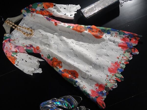 とても美しいこれぞ究極の花柄ワンピ-スです。鮮やかかつ涼しげで上品な一着です。背中ファスナー有。裏地有。