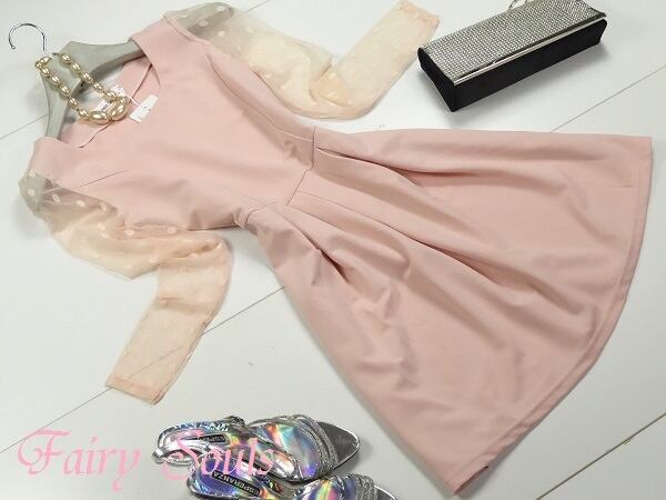 華やかでエレガントで贅沢なディテ-ル。ネックはラウンドネックでアクセサリ-との相性も抜群です。ウエストからさりげなく広がるラインもとても可愛くて優しい女の子のイメ-ジです。右ファスナ-有。裏地なし。