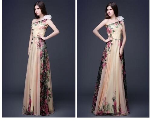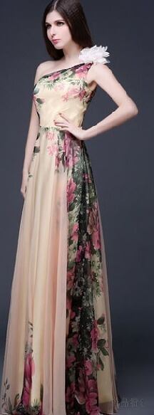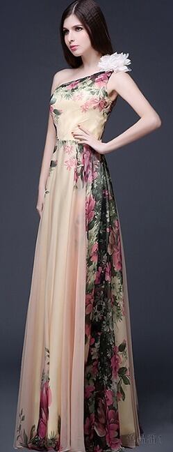 天使のようなとても見栄えのする豪華なプリントシフォンロングドレスです。スカ-ト部分はたっぷりと生地を使い大変ボリュ-ム感のある女性らしい素晴らしいドレスワンピ-スです。軽やかでしなやかな生地で裾が歩くたびにひらひらと揺れ、足元を美しく見せてくれます。裏地付。右ファスナ-有。コサ-ジュは付いていません。