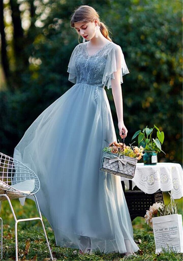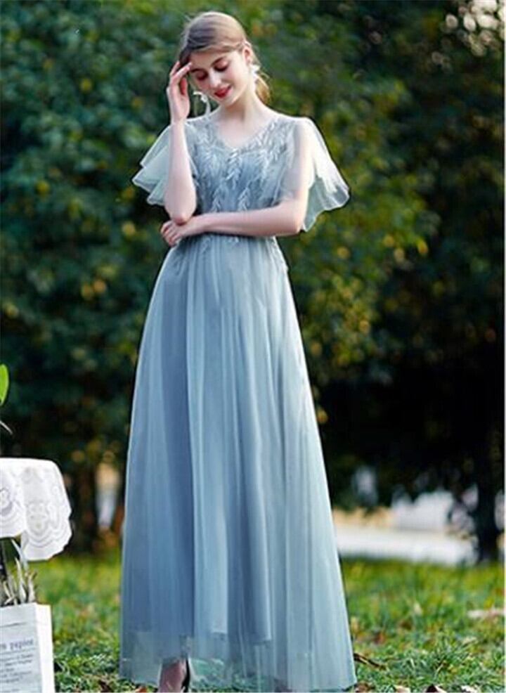 チュール袖フリルのパ-ティ-ロングドレスです。ダークブル-のサテン地の上に同色のチュールを重ねて豪華な雰囲気に。トップス部分は立体刺繍が施されたチュ-ルが重ねられ華やかに。袖は肩からたっぷりとチュールを使用した広がるデザインで動きやすくなっています。パーティやイベント、結婚式など、様々なシーンで、気品のある印象を与えてくれる一枚です。裏地有。背中網掛け。腰下ファスナ-有。胸パット付き。(ロングの方です。)