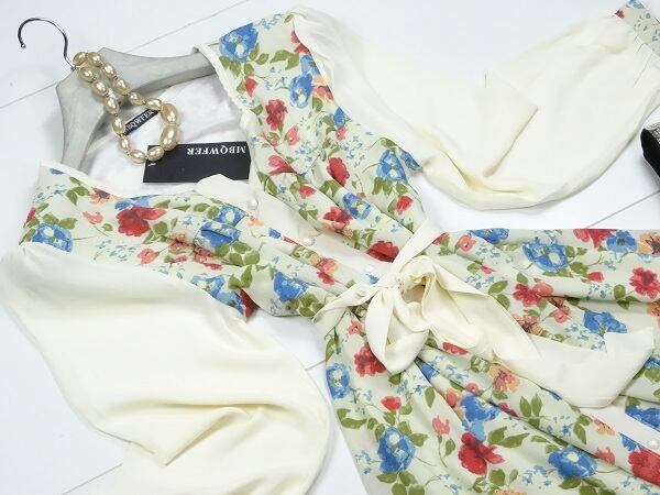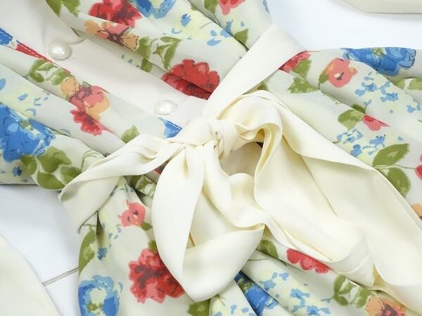 前開きの色鮮やかで目を引くデザインがとてもオシャレなワンピ-スです。大人の女性らしさが薫る美しいシルエットで、上品かつ優しい女性を表現してくれます。透明感ある素材使いが、とてもオシャレでしぐさを優雅に見せてくれる贅沢なお洋服です。裏地あり。ファスナ-なし。前ボタン7つ留め。ウエストリボン付。