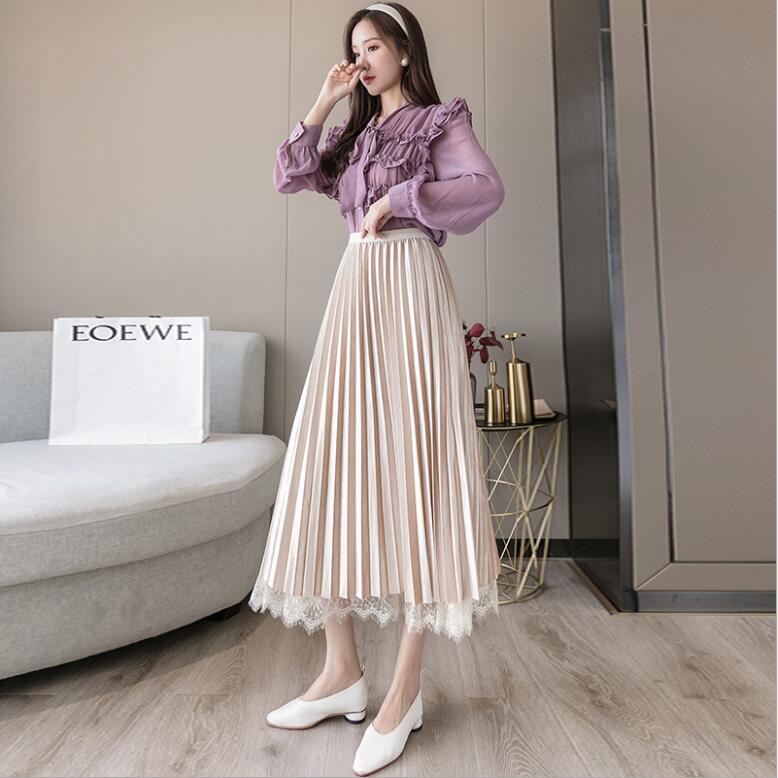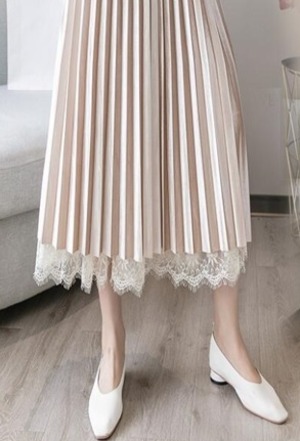 リバ-シブルのロングスカ-トです。シックなオフホワイトのチュール地をふんだんに使用。裾は山形にカットし花模様をあしらった魅力的な一着。ウエストゴム仕様。ファスナ-なし。