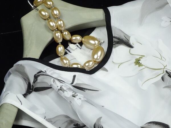 つややかサテン生地ボタニカル柄のワンピ-ス。つるつるとした白いサテン地に墨絵のようなシックな花模様をプリント。シンプルなフォルムは飽きのこないデザイン。ちょっとおしゃれな普段着から、デート、パーティなど様々なシーンで活躍してくれる一着です。背中ファスナ-有。裏地あり。