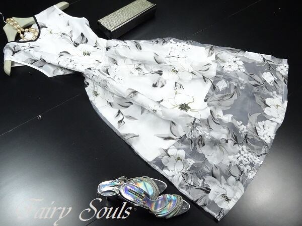つややかサテン生地ボタニカル柄のワンピ-ス。つるつるとした白いサテン地に墨絵のようなシックな花模様をプリント。シンプルなフォルムは飽きのこないデザイン。ちょっとおしゃれな普段着から、デート、パーティなど様々なシーンで活躍してくれる一着です。背中ファスナ-有。裏地あり。