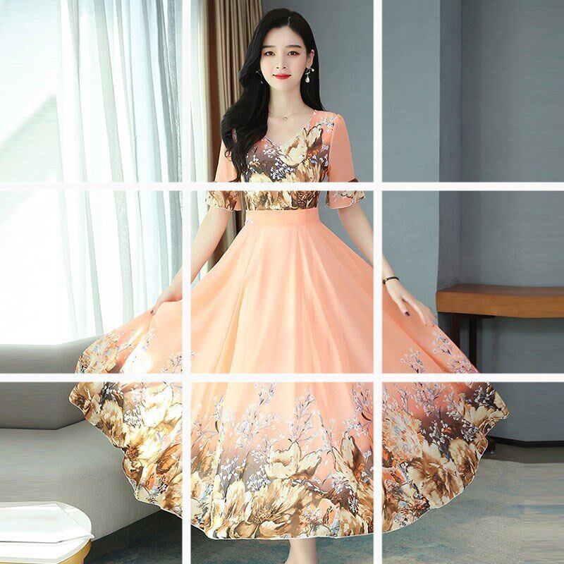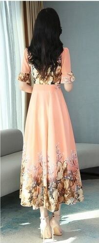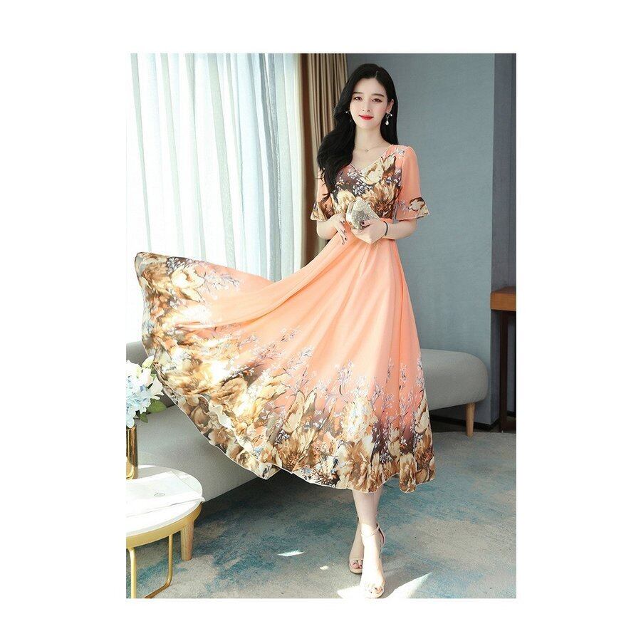 天使のようなとても見栄えのする豪華な花柄シフォンマキシ丈フレア-ワンピ-スです。スカ-ト部分はたっぷりと生地を使い大変ボリュ-ム感のある女性らしさを引き出してくれる一着です。軽やかでしなやかな生地で裾が歩くたびにひらひらと揺れ、足元を美しく見せてくれます。裏地有。右サイドファスナ-有。