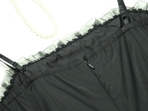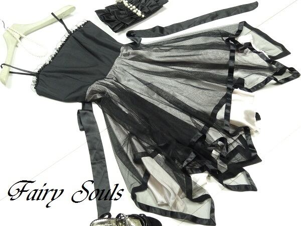 黒のキュートなアシンメトリ-なミニドレス。シンプルなラインのトップスは、胸元に黒のスパンコールを配し、ウエストから裾までのランダムカットのコントラストが美しいデザインで、ウエストの大きめのリボンが素敵です。裾はチュールにサテンのバイアスでアクセントに。シックでキュートな、着る人の魅力を十分に引き出してくれる一着です。裏地あり。背中ファスナ-有。
