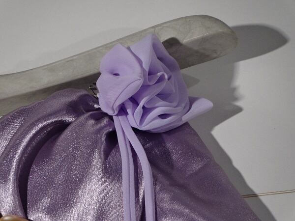 深い光沢のあるピンクパープルのロングドレス。色は光のあたり具合でピンクにも見えるやさしいパープル。襟もとのドレープが、シンプルなフォルムにアクセントを加え上品なデザインに仕上がっています。パーティ、イベント、結婚式の二次会、コンサートなど幅広いシーンで活躍してくれる一着です。胸のコサージュは取り外し可能。肩紐取り外し、調整可。胸カップ仕様。サイドファスナー。裏地あり。