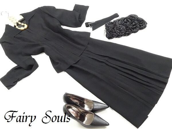ブラックフォ-マルス-ツです。ワンピ-スは前腰下プリ-ツにまっています。裏地有。背中ファスナ-有。ベルト付。