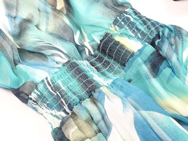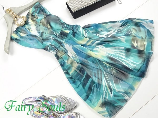 LEGGY PRESSのボタニカル柄が美しく華やかなデザインのシフォンワンピ-スです。ベアトップで女性らしく綺麗な色合いで素敵です。とてもエレガントな一着です。裏地あり。ウエストゴム。ファスナ-なし。