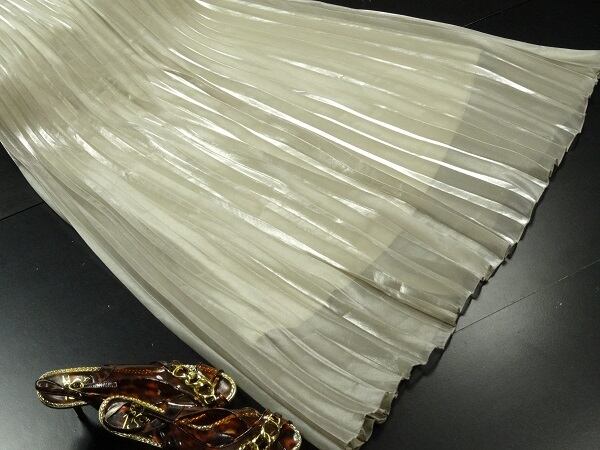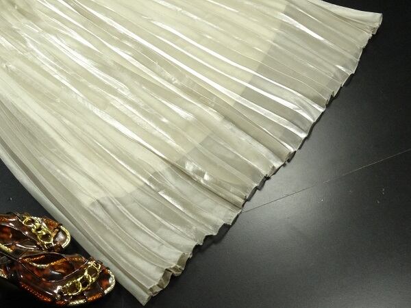 光沢シャイニ-ロングプリ-ツスカ-トです。動くたびに揺れエレガントで光沢感がお洒落なスカ-トです。プリ-ツがとても綺麗です。女子力UP間違いなしとおもいます。ファスナ-なし。裏地あり。