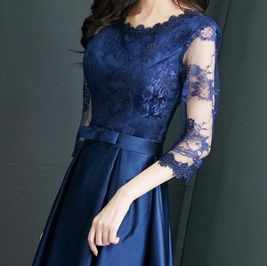 エレガントパ-ティ-ワンピ-スです。気品に満ちたとてもエレガントで上品なひとクラス上をいく一品です。トップス部分のレースの透け感もとても上品でエレガントです。裏地有。背中ファスナ-有。胸カップ付き。