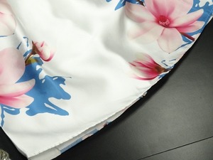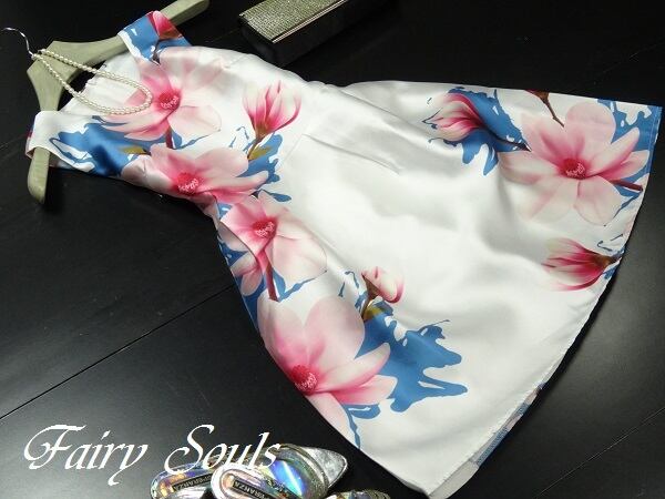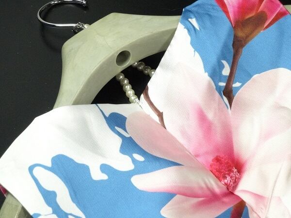 ボタニカル柄のワンピース。しっかりとした生地に淡いボタニカル柄をちりばめたキュートで、かつ上品なデザイン。大きな花のプリントが着る人の心まで明るくしてくれる一着です。裏地有。背中ファスナー有。