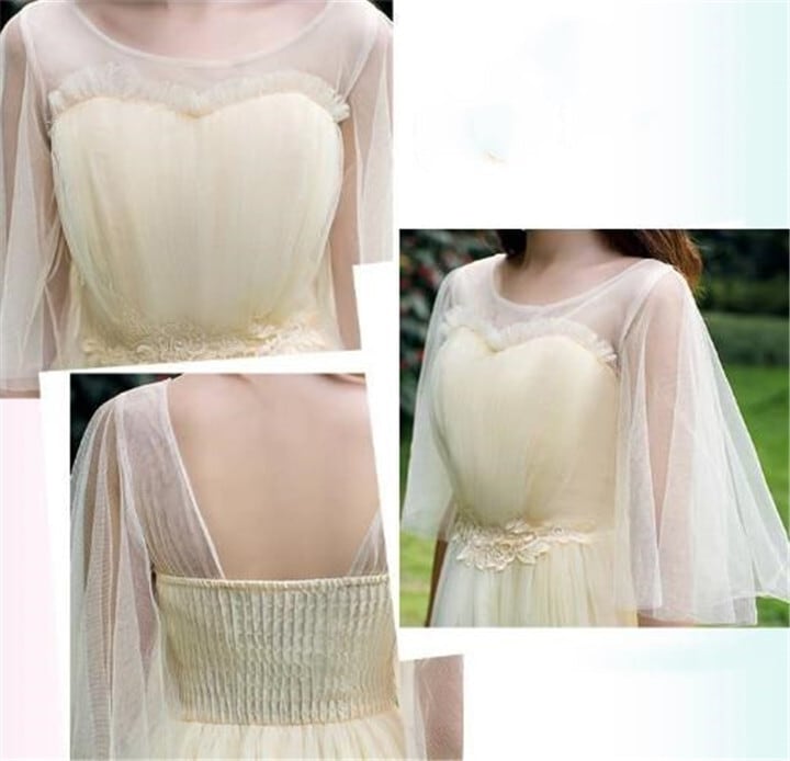 チュール袖フリルのパ-ティ-ドレス。濃いピンク地の上に同色のチュールを重ねて豪華な雰囲気に。袖は肩からたっぷりとチュールを使用した広がるデザインで動きやすくなっています。背中シャ-リングです。パーティやイベント、結婚式など、様々なシーンで、気品のある印象を与えてくれる一枚です。裏地有。右脇ファスナ-有。胸パット付。(1~3枚目の色です)