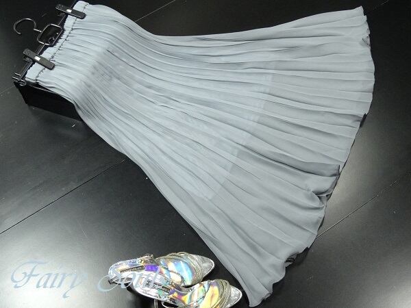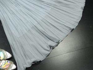 流れるような美しいロングプリ-ツスカ-トです。艶のあるシフォン地で、動くたびに揺れるエレガントなデザイン。ファスナ-なし(ウエストゴム仕様)。裏地あり。