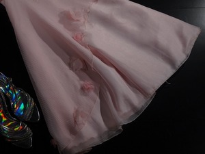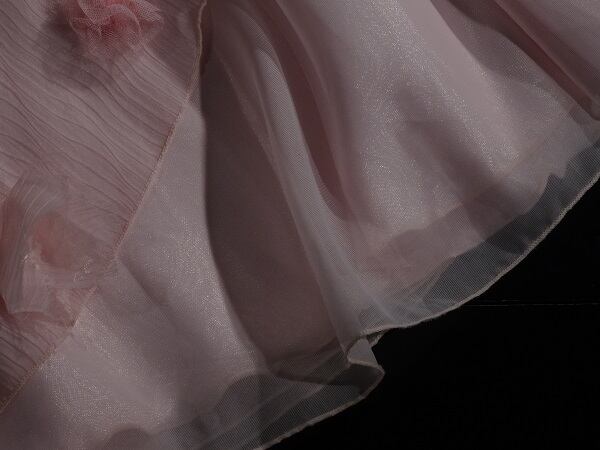 パステル系ピンクで波のような質感のシフォン生地に光沢サテン系生地を合わせたドレスです。飽きの来ない、工夫を凝らした素敵な一品です。様々なシーンで活躍してくれるでしょう。裏地有り。背中ファスナ-有。スト-ル付き。