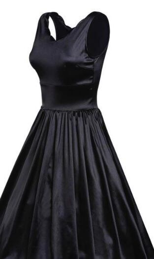とろみ素材ノ-スリ-ブのワンピース。しなやかな黒のとろみ素材を使用。V字カットの襟元とノースリーブのシンプルなラインが美しく、全体的にバランスが良く、ピュアでフェアリーなデザインになっています。着る人を美しく魅せてくれるシックな一着です。裏地なし。背中ファスナー有。