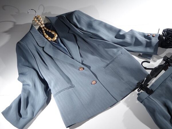 レトロデザインのジャケットとスカートのセットです。シンプルなラインのスカートとあわさり、品の良いシルエットに仕上がっています。ワンランク上の大人の装いを演出してくれる一着です。裏地あり。日本製。