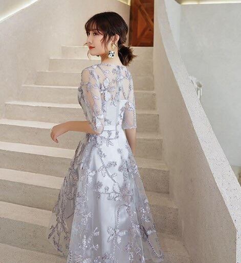 立体刺繍チュ-ルレース仕立てパ-ティ-ドレスです。トレンド感たっぷり色の美しいエレガントなミディアムドレスです。ハイウエストのリボン切替で脚長効果のあるデザイン性のあるスタイルがとても魅力的な一着です。全体的に女性度UPに仕上げられています。背中ファスナ-有。胸パット付き。